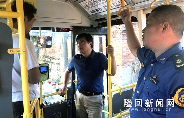 隆回新闻网讯(通讯员 罗爱军)9月24日下午,隆回县交通运输局副局长周英鹤率县城市公共客运事务中心工作人员,采取“四不两直”方式,来到1路公交车的终点站湖湘职业中专检查公交车的安全运行情况。