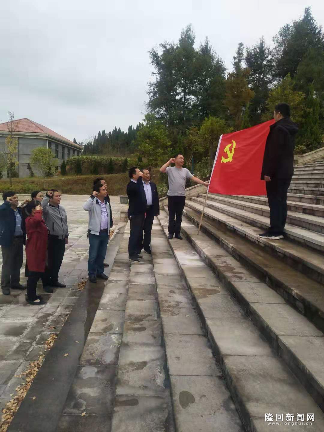 隆回县信访局全体党员在英雄纪念碑前接受革命传统教育。