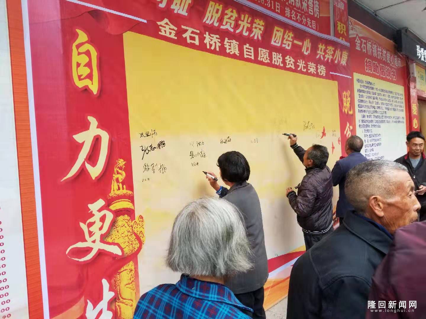 继金石桥镇4个村128名贫困户集体庆祝脱贫后,在10月17日这个特殊的日子里,其他村(居)纷纷效仿,结合自身实际,广泛性开展贫困户主动脱贫签名活动,脱贫活动掀起一个又一个新高潮,“脱贫光荣”意识深入人心。