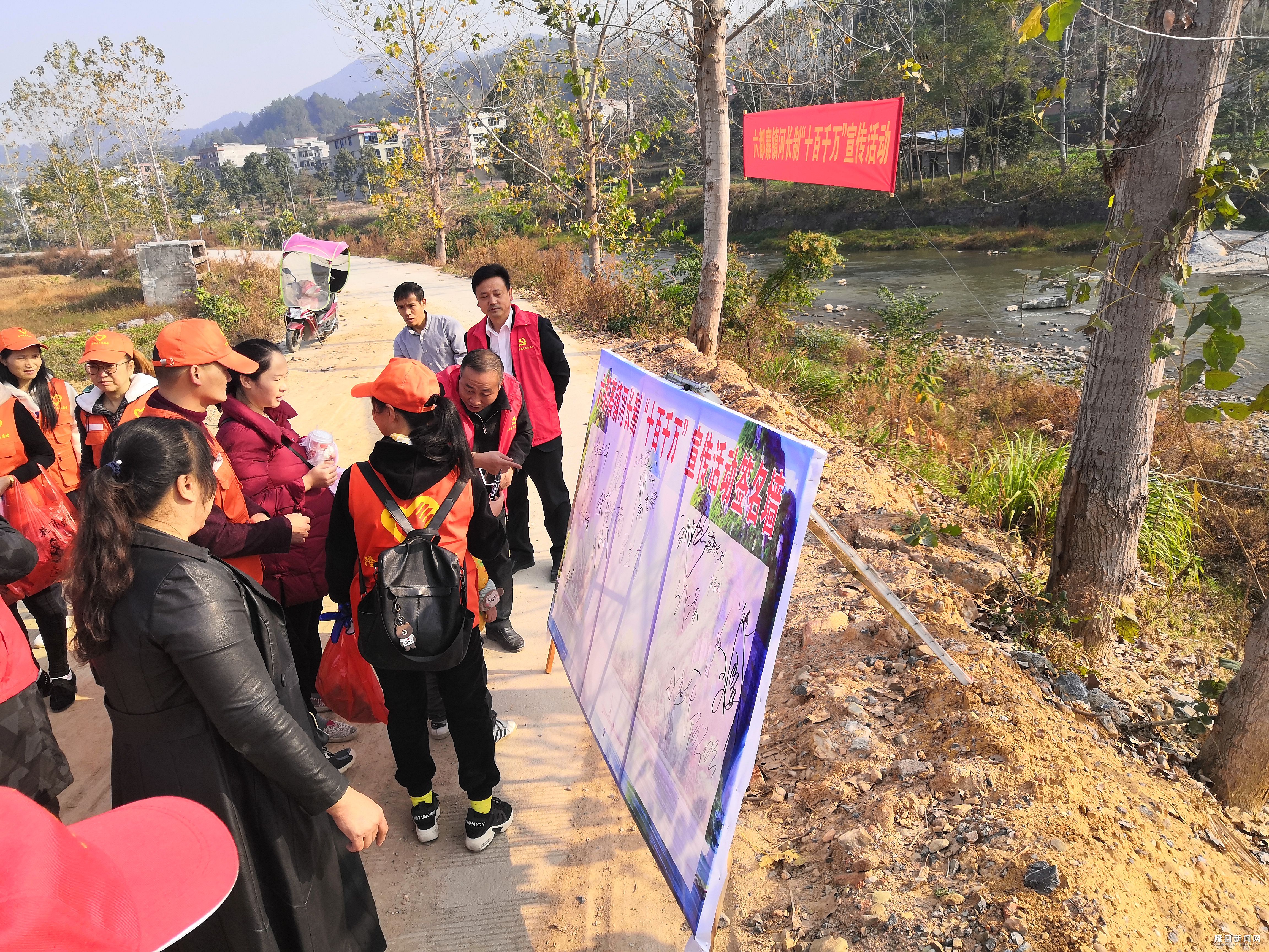 活动中,来自六都寨镇志愿服务大队、六都寨镇青年农民党支部和魏源湖青年志愿服务队的志愿者们通过向闻讯而来的群众宣讲推行河长制的重大意义和目标任务、引导大家在宣传活动签名墙上签名以及沿街入户发放宣传手册等方式,呼吁群众从身边小事做起,共同参与河道环境治理,营造全社会关爱河流、珍惜河流、保护河流的浓厚氛围,推动践行“绿水青山就是金山银山”的绿水发展理念。当天,志愿者们还对辰河“样板河”河段进行了环境卫生大清扫。