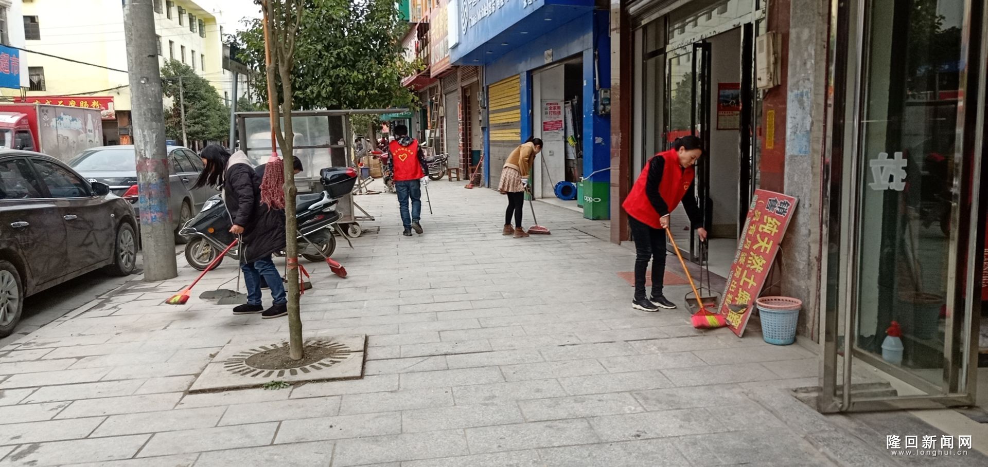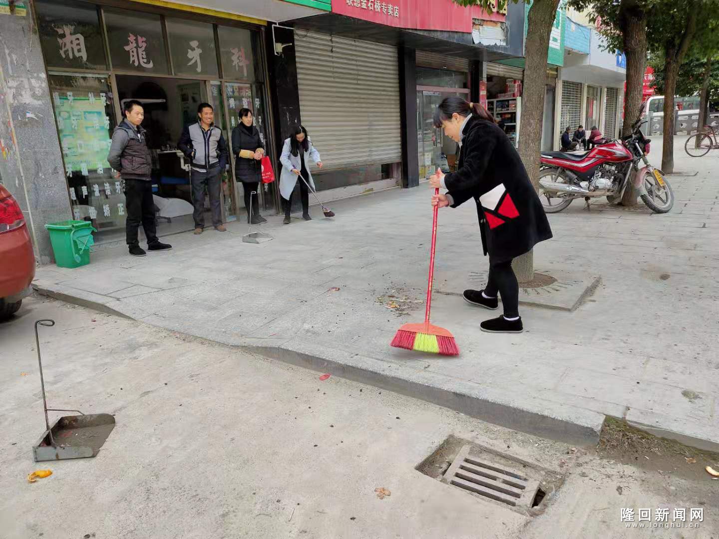 志愿者们在街头清扫垃圾