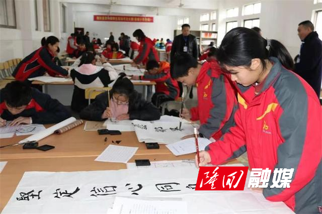 此次比赛分学生精英组、教师精英组、乡镇(街道)小学生组、乡镇(街道)中学生组、高中组、教师组(新人)、县城学校中学生组、县城学校小学生组、示范学校学生组、示范学校教师组共10个组,邀请了县内书法界有名人士担任大赛评委。比赛项目学生为毛笔、钢笔字,要求在60分钟之内完成,教师为毛笔、钢笔、粉笔字,要求在90分钟内完成。书写内容新人组现场抽选内容,书体以楷书为主;精英组以现场临习碑帖为主,书体不限、内容不限。比赛现场,氛围浓厚,参赛选手们激情满怀、神情专注,精心创作完成自己的作品,篆隶草行楷诸体纷呈,充分展示了隆回师生在书法方面的水平和成果,让大家感受到了传统文化的无穷魅力。