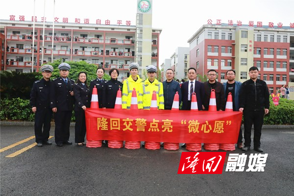 此次“微心愿”活动,隆回交警根据九龙学校周边道路的特点,为学校送去100个爱心锥形筒,缓解学生上下课高峰期家长接送造成学校门口交通拥堵的情况。
