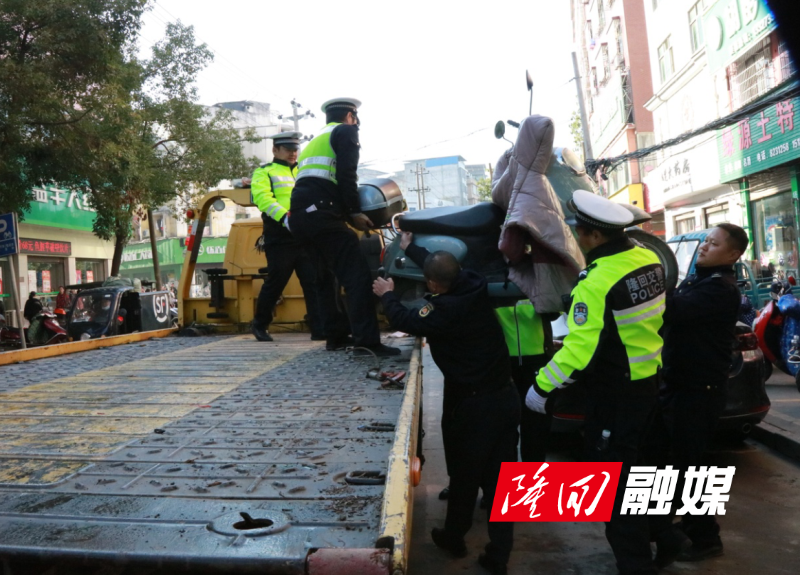 11月25日,联合执法组先后来到朝阳市场、万和路段、农贸市场等区域,对违法占用公共停车位的机动车、非法安装雨篷雨伞及乱停乱放的电动车、摩托车等违法行为进行整治,做到发现一辆、查处一辆、拆除一辆。