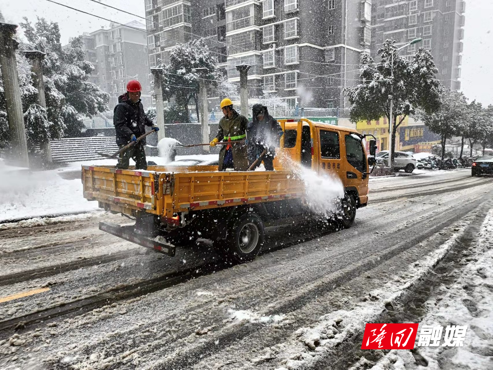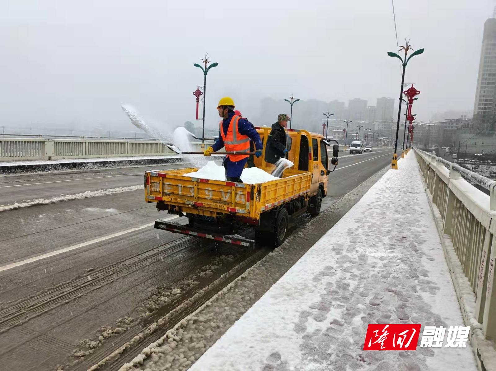 隆回新闻网讯(通讯员 陈虎)2月22日清晨,隆回县公用事业服务中心组织安排专业人员冒着风雪对城区陡坡、桥梁等路段进行撒盐、抛洒融雪剂等作业。