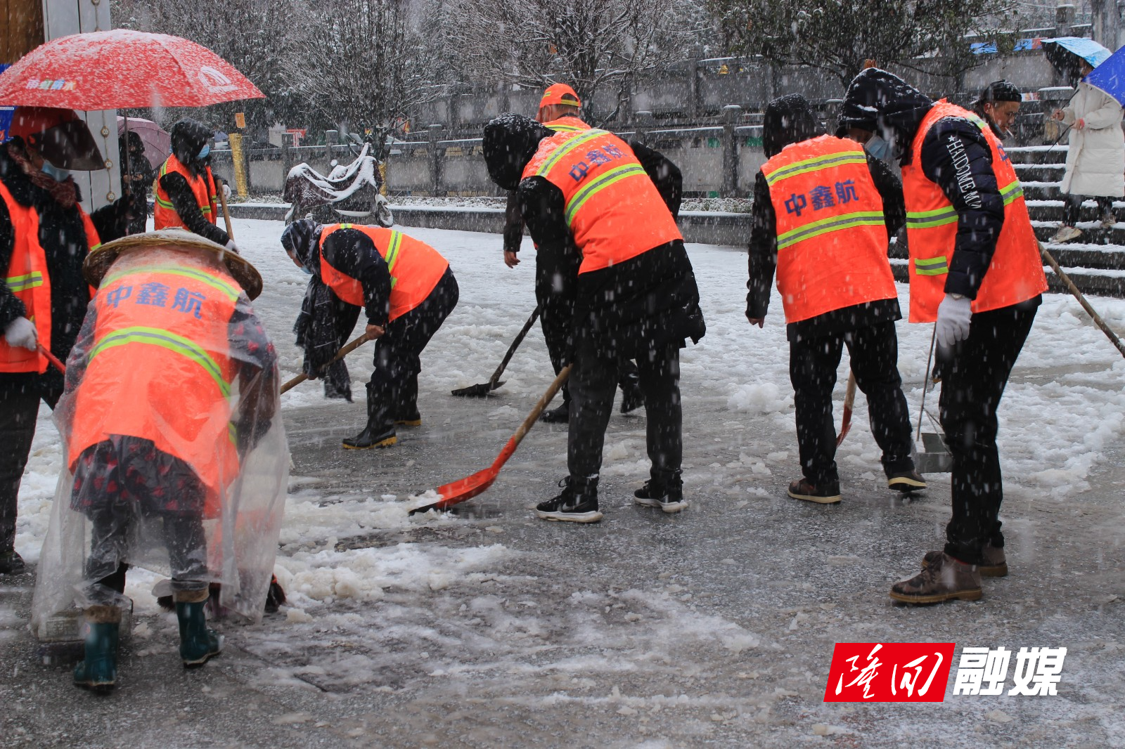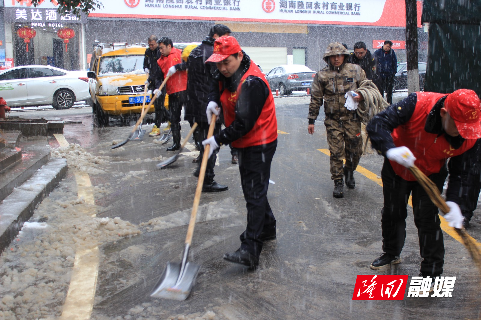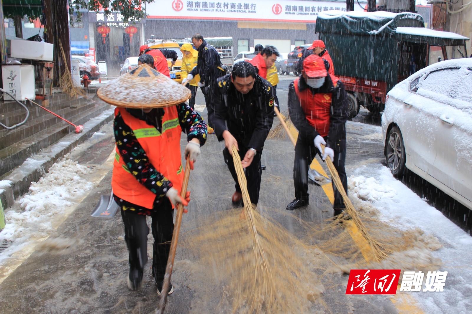 当日,隆回县城管局共出动扫雪除冰人员900余人次和车辆、撒盐机等机械设备40余台次,县城区交通通畅有序。