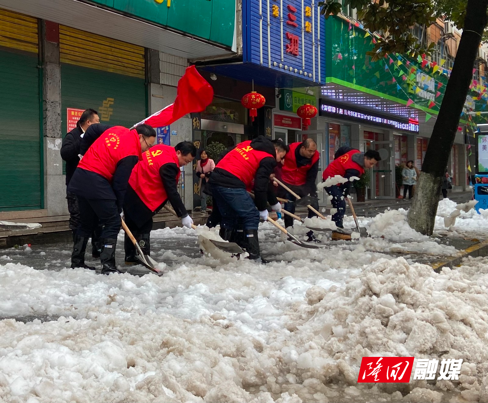 隆回新闻网讯 2月23日,隆回县开展扫雪除冰行动,人社系统积极响应,迅速行动,除窗口值班人员外,党员干部职工全部出动,身着志愿服务红马甲,传递志愿服务力量,在机关院内外、桃洪东路北侧县邮政局至万和路口红绿灯段除雪铲冰,让党旗在破冰除雪第一线高高飘扬。