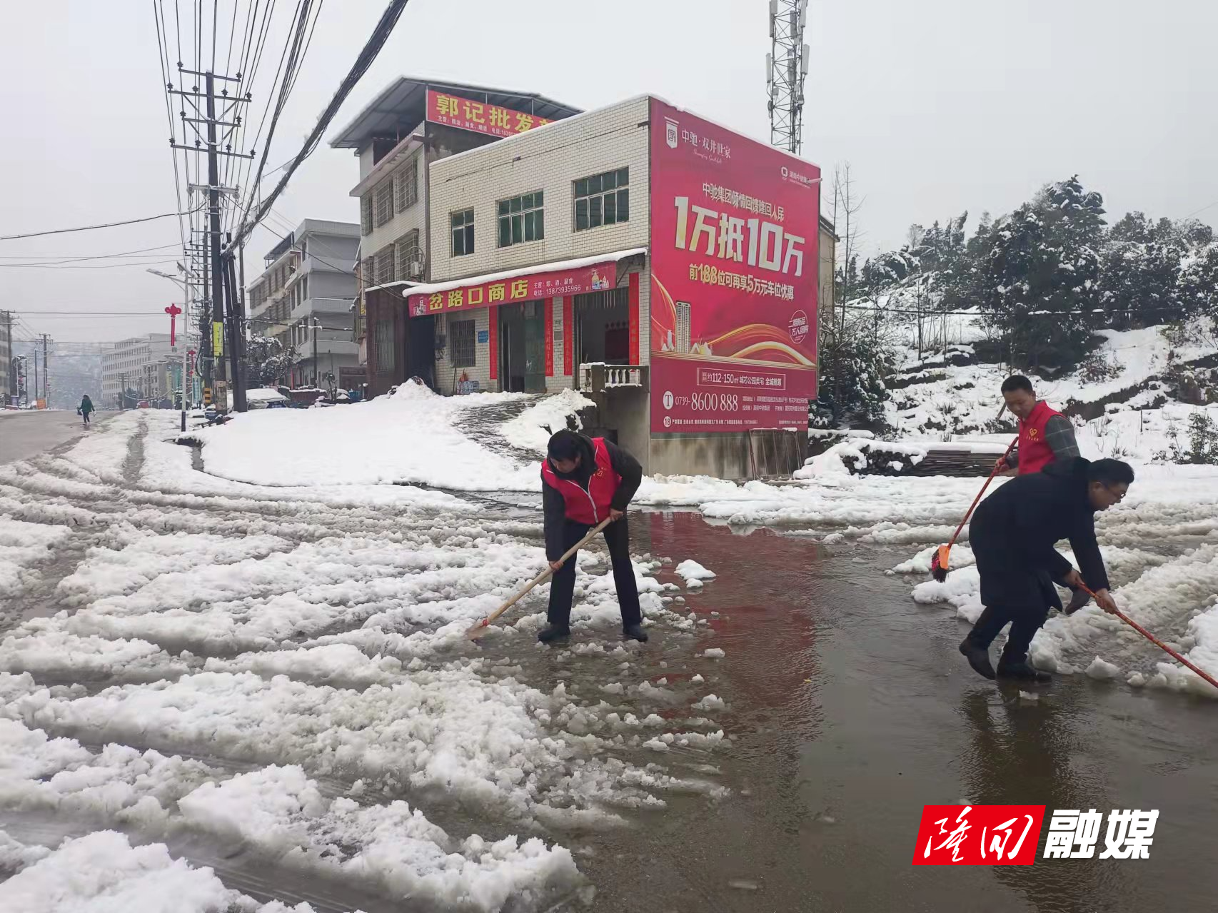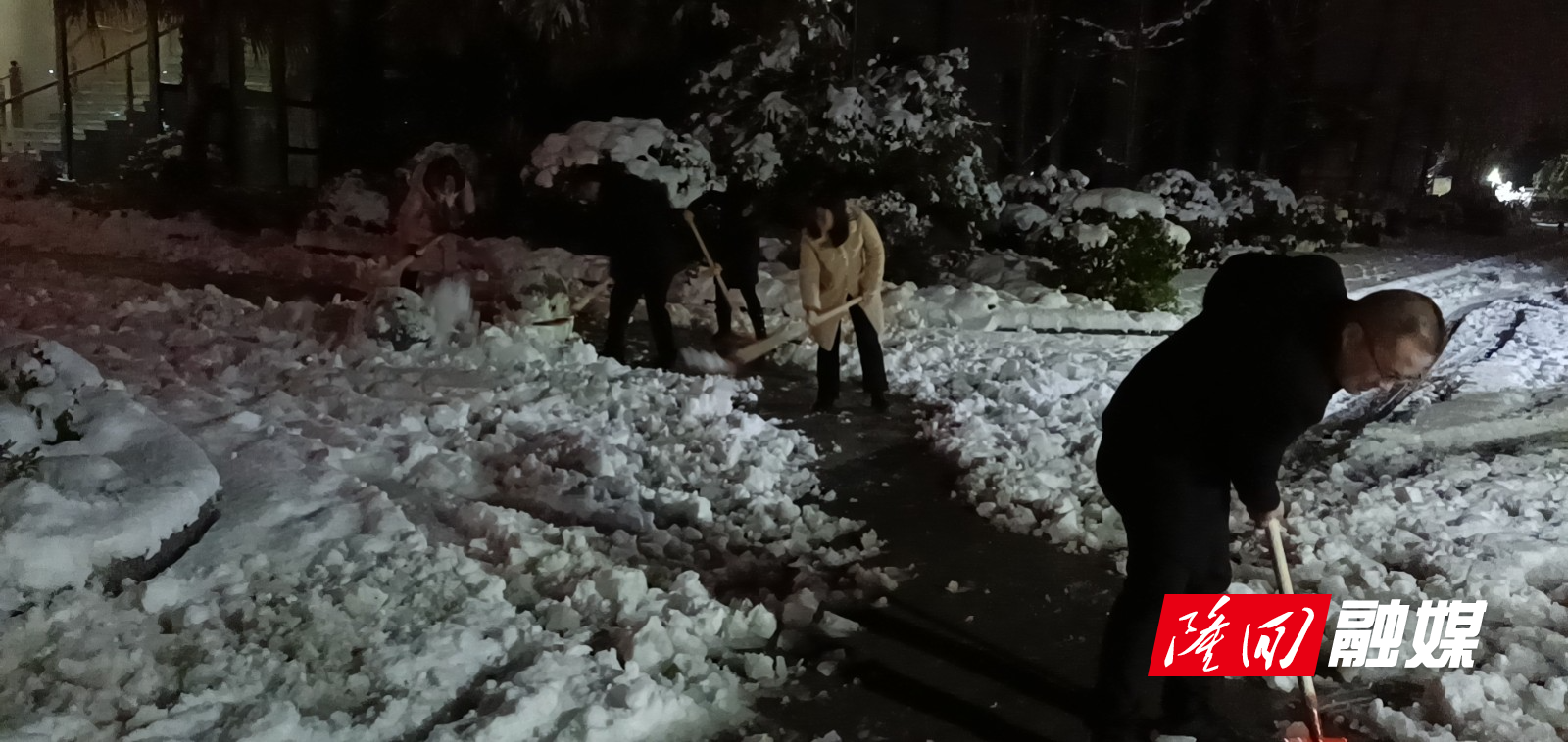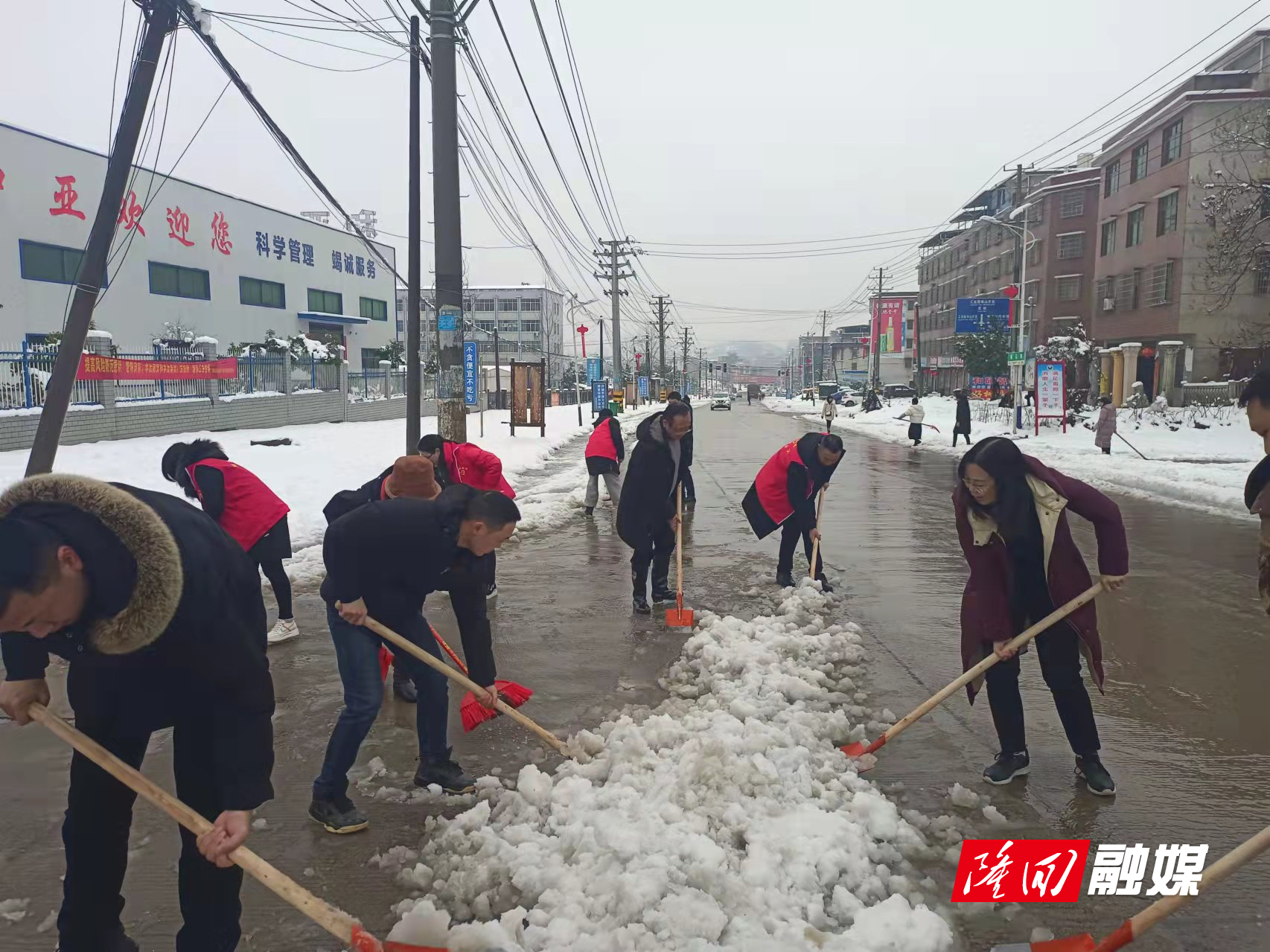 2月22日深夜,隆回高新区党工委书记何本君,高新区党工委副书记、管委会主任谭小菊组织党员干部不畏严寒,相互配合,用铁铲、铁撮箕等各种工具全力除雪。23日上午,隆回高新区管委会再次组织园区全体干部职工、企业分区域、分组对园区内主要干道、重要路口开展扫雪除冰志愿服务行动,为群众出行安全提供保障。