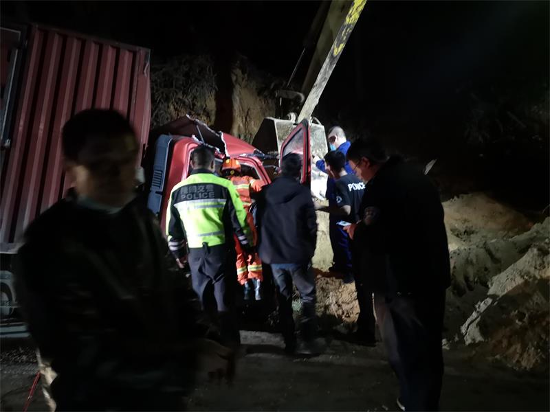 接到指令后,金石桥交警中队、派出所、消防立即出动警力前往处置,并及时与医疗部门联系,共同赶赴现场进行救援。22时50分许,交警、派出所、消防、医疗等部门工作人员相继赶到S322隆回县鸭田镇苗田村路段的事故现场。到达现场后,只见一辆大货车因车辆侧翻撞击车头已凹陷,驾驶室也损毁严重,驾驶人下半身被卡在方向盘下方,动弹不得。经医护人员现场诊断,货车驾驶人无生命危险。