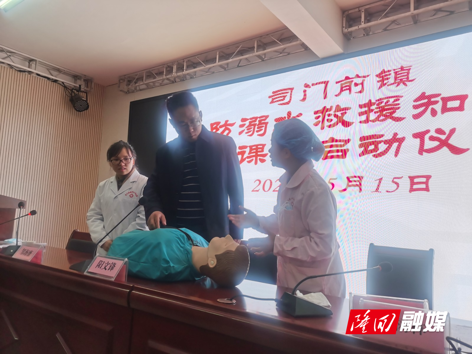 启动仪式上,司门前镇党委书记阳文锋传达了关于未成年人防溺水工作相关要求,列举了周边近年来发生的真实溺水身亡案例,并指出,教师要在课堂上时刻教育学生珍爱生命,进一步树立防溺水安全意识和牢记防溺水“七不两会”。随后,医护人员通过现场模拟演示讲述了预防溺水的基本方法、溺水时的治疗方式以及心肺复苏操作流程等基本的溺水救助常识。