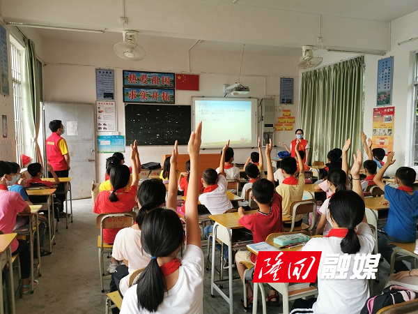 志愿者来到困难留守儿童家中,为困难儿童送上“六一”大礼包,同时做好留守儿童的心理疏导。随后,志愿者在镇中心小学与留守儿童一起学习抗疫典型故事,为留守儿童讲授防溺水、消防、用电等安全知识、学习防疫和禁毒知识,发放防疫和安全知识等宣传资料,并开展安全知识竞答活动,进一步提高孩子们的安全意识。