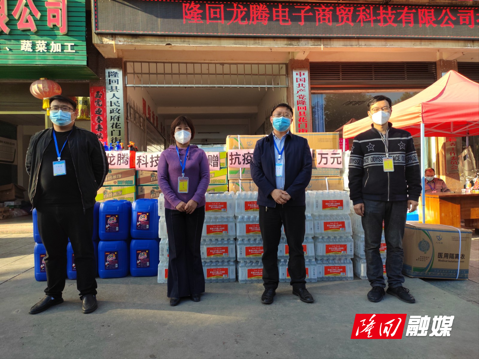 —分享— 隆回新闻网讯(记者 肖乾波)11月2日下午,隆回龙腾电子商贸科技有限公司向花门街道捐赠医用隔离衣、84消毒液、N95口罩等防疫物资和自热米饭等生活物资,价值2.4万元。 来源:隆回县融媒体中心 作者:肖乾波 编辑:喻无瑕
