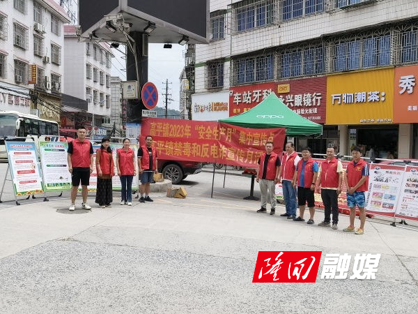 隆回新闻网讯(通信员 喻荣结 罗教林)6月11日,隆回县高平镇应急办、司法所、派出所组织开展安全生产月集中宣传活动。