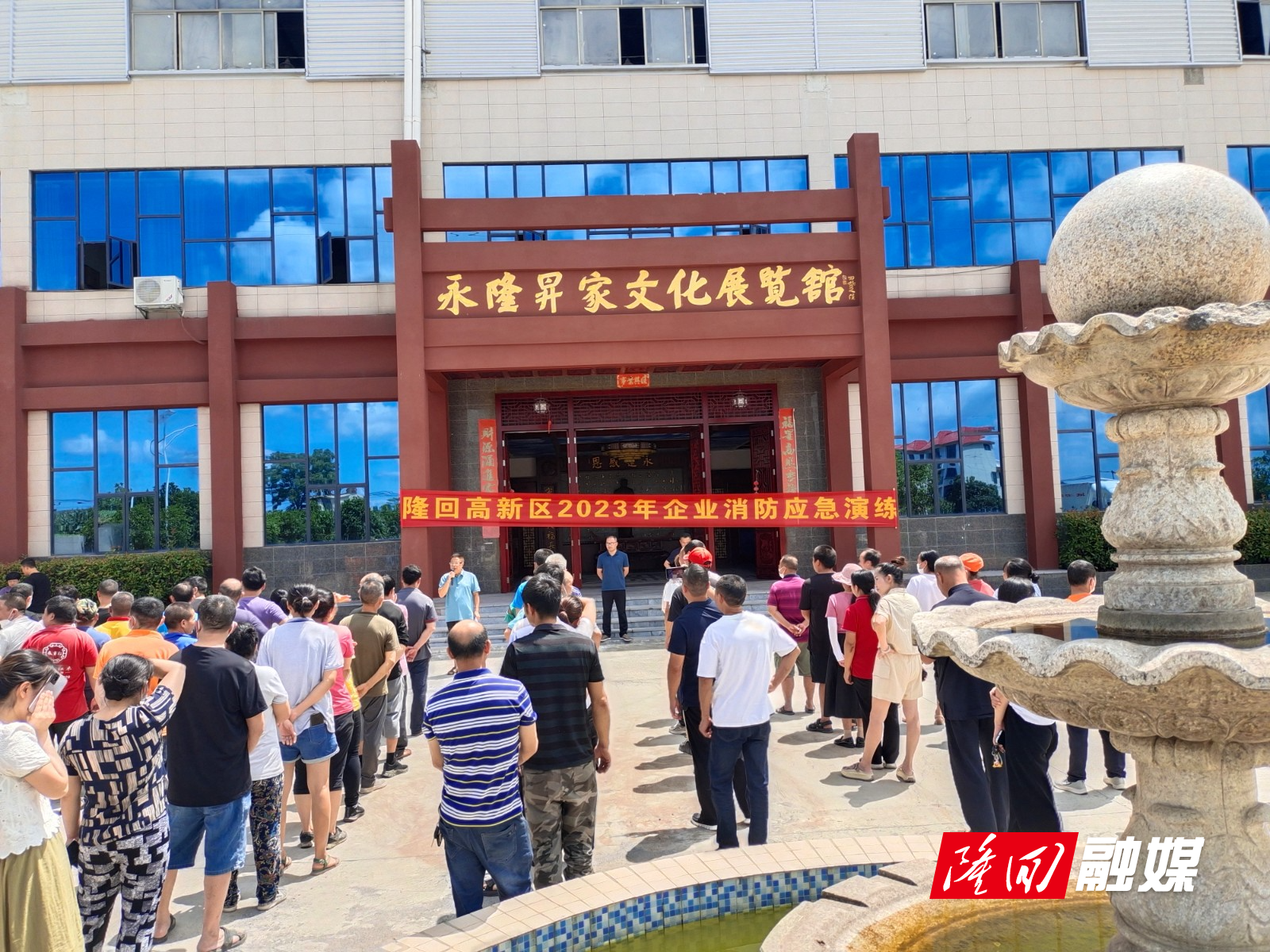 上午11时,在园区湖南永隆昇雕刻工艺有限公司内,消防演练正式开始。随着火警报警声一响,参加演练的员工们井然有序地向安全区域疏散,各楼层负责人查看现场是否有人员被困在烟雾区。人员疏散至楼下空坪后,消防队员添加燃烧物准备灭火,两人一组手持灭火器同时出发,进行灭火演练。