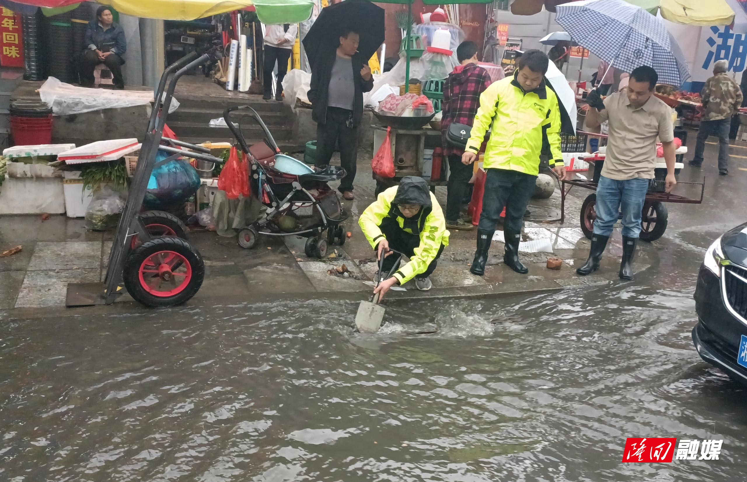 隆回新闻网讯(通讯员 陈虎 马春)4月18日下午2时左右,隆回县突降大雨,县公用事业服务中心迅速启动防涝应急预案,发动全体工作人员对县城区各路段进行排查。经排查发现,赧水北路、中心市场、总站等区域积水严重,为广大市民出行造成极大不便。该中心立即调配力量,班子成员按照防汛应急预案分组带领各组人员前往积水严重区域,利用铲子、撬杆等工具将积水路段雨水井口覆盖的垃圾进行持续清理,以保持水流通畅。下午4时左右,积水基本排完,路面恢复正常,顺利保障了市民的安全出行。