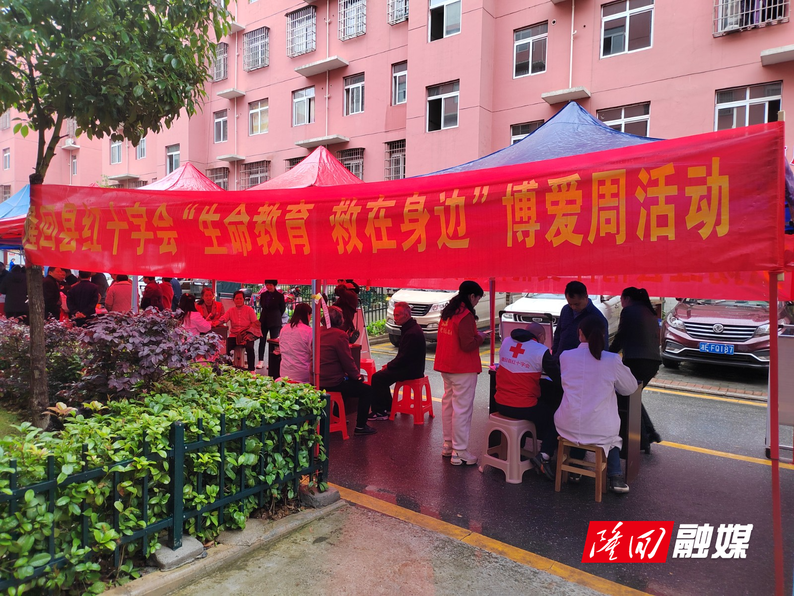 隆回新闻网讯 (记者 肖乾波)为纪念第76个世界红十字日,大力弘扬“人道、博爱、奉献”的红十字精神。5月10日,隆回县红十字会联合红十字医院到桃花坪街道兴业安置区管委会开展“生命教育 救在身边”为主题的“红十字博爱周”活动。